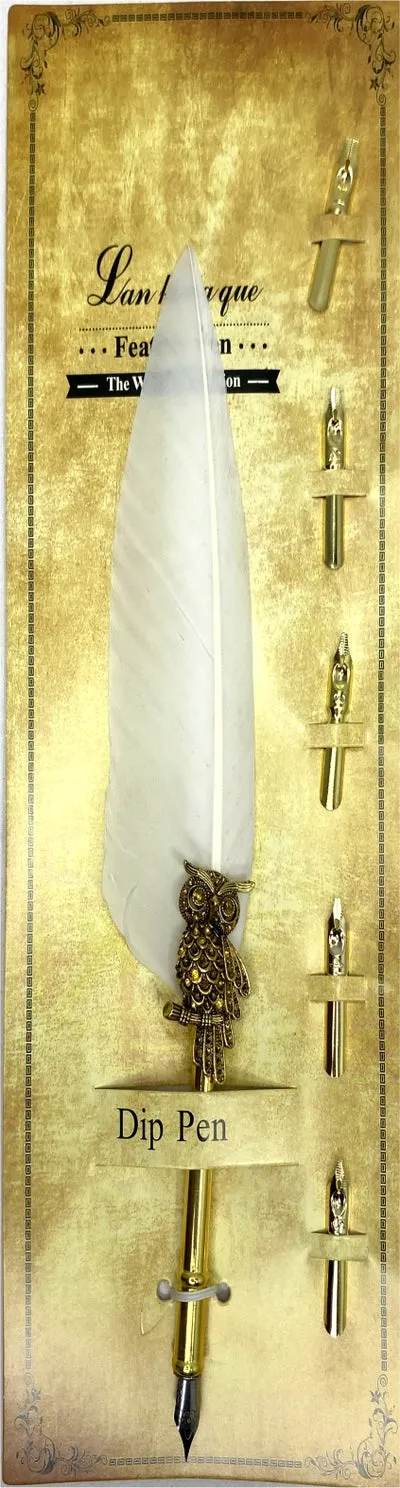 Elegant feather dip pen with 5 interchangeable nibs for varied writing styles